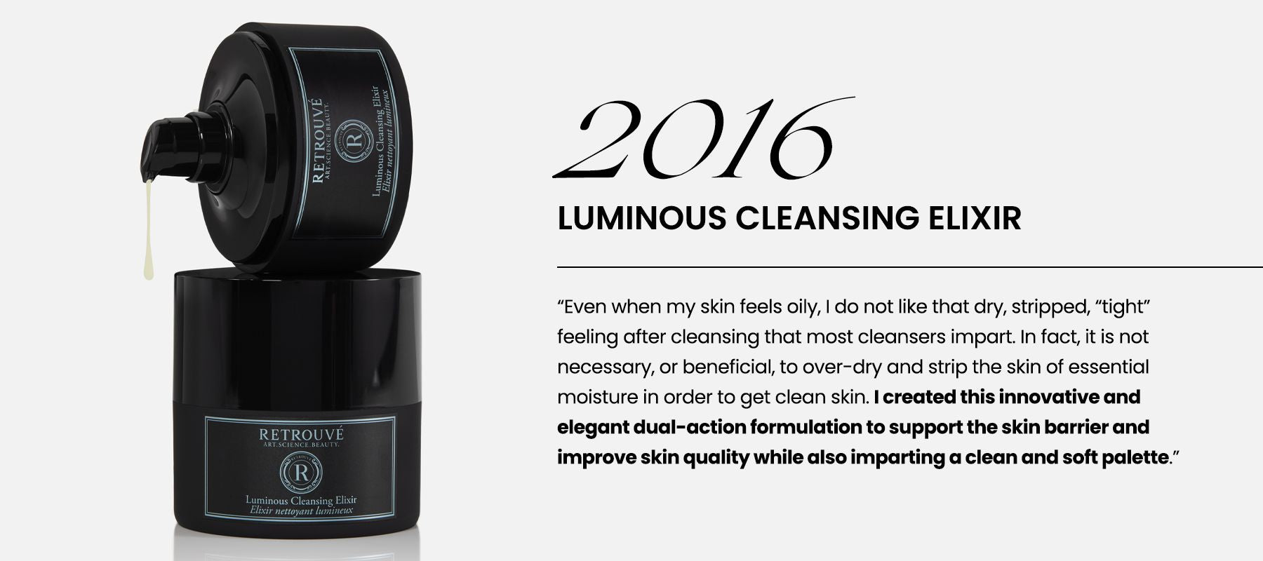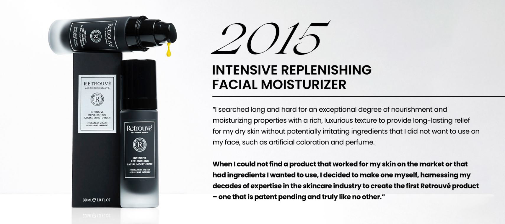 When I could not find a product that worked for my skin on the market or that had ingredients I wanted to use, I decided to make one myself, harnessing my decades of expertise in the skincare industry to create the first Retrouvé product – one that is patent pending and truly like no other.”